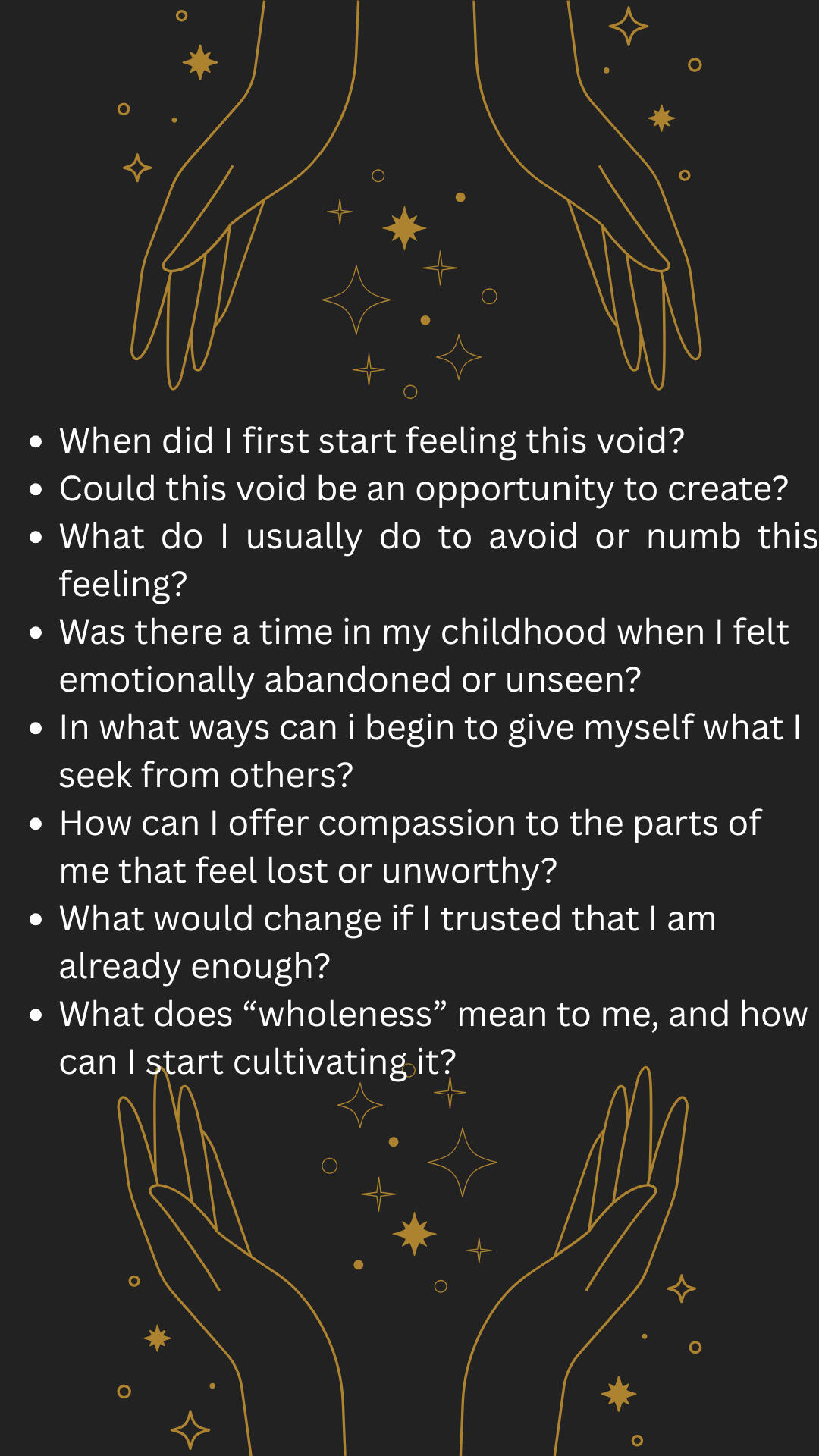 That ache you feel inside isn’t a flaw. It’s not something others or habits can truly heal. It’s a gentle call to return inward, to meet yourself with love and curiosity.Whether you seek others’ approval, reach for substances, or disappear into your screen, it’s your soul asking for something deeper. Real freedom begins when you learn to befriend your inner world, to hold space for your own pain, and to fill your void with self-love, presence, and purpose.Ready to live unbound?